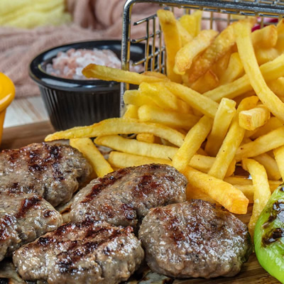 PARMAK DİLİM PATATES SOSİS SOĞAN HALKASI SİGARA BÖREĞİ VE İSTEGE BAĞLI ÇITIR TAVUK EŞLİĞİNDE SERVİS EDİLİR.
